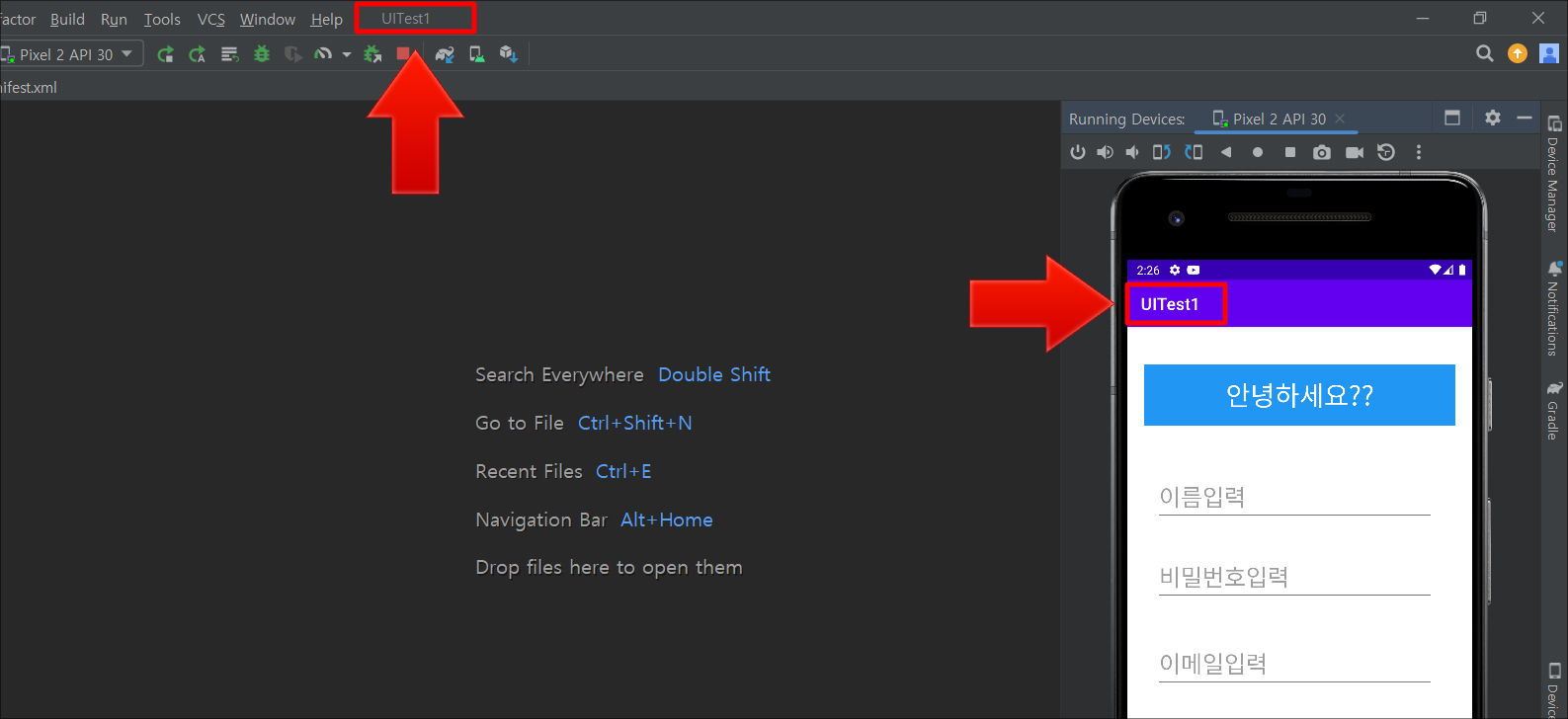 안드로이드 스튜디오 앱개발을 처음 할때 프로젝트의 이름이 곧 앱이름이 된다. 이 이름은 앱을 실행을 했을때 상단바에 보이게 되는데 이름을 바꿔야 하는 상황이 생길 수 있다.