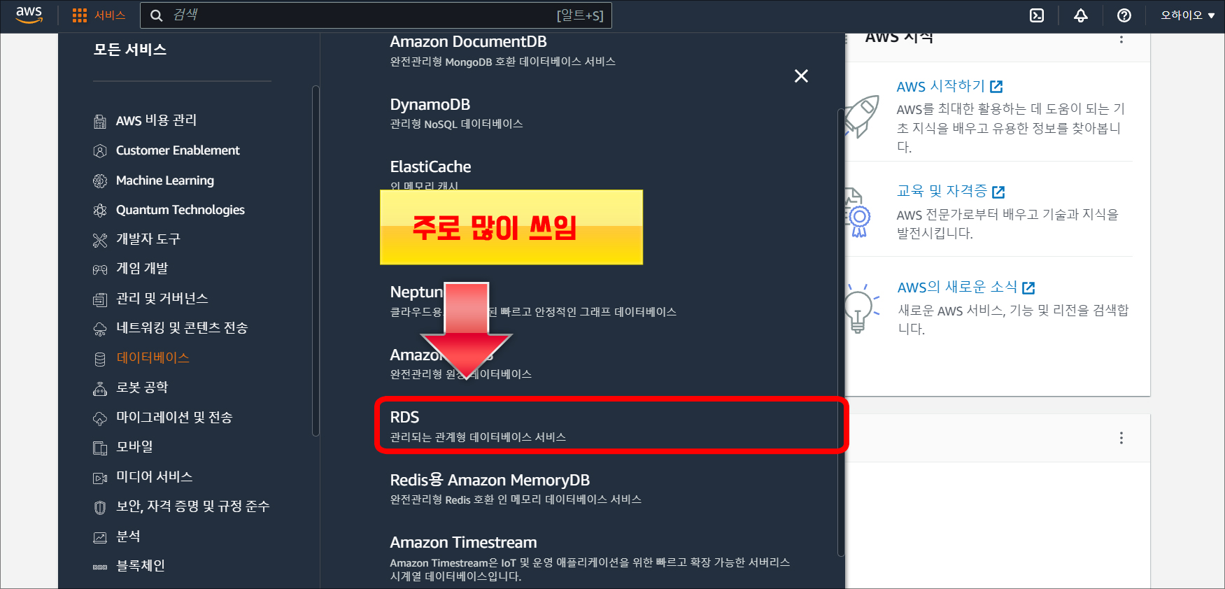 - RDS : 관리되는 관계형 데이터베이스 서비스