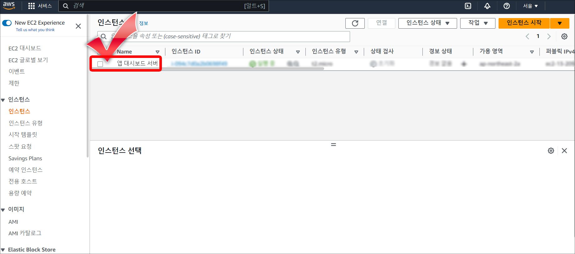 - 문제없이 진행이 잘 되었다면 아래와 같이 인스턴스가 보인다.