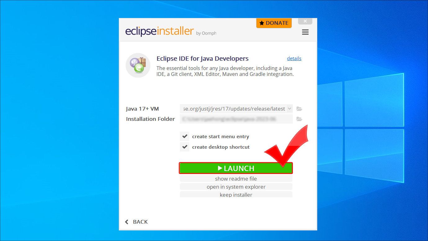 인스톨 과정이 끝나면 "LAUNCH" 를 클릭한다.